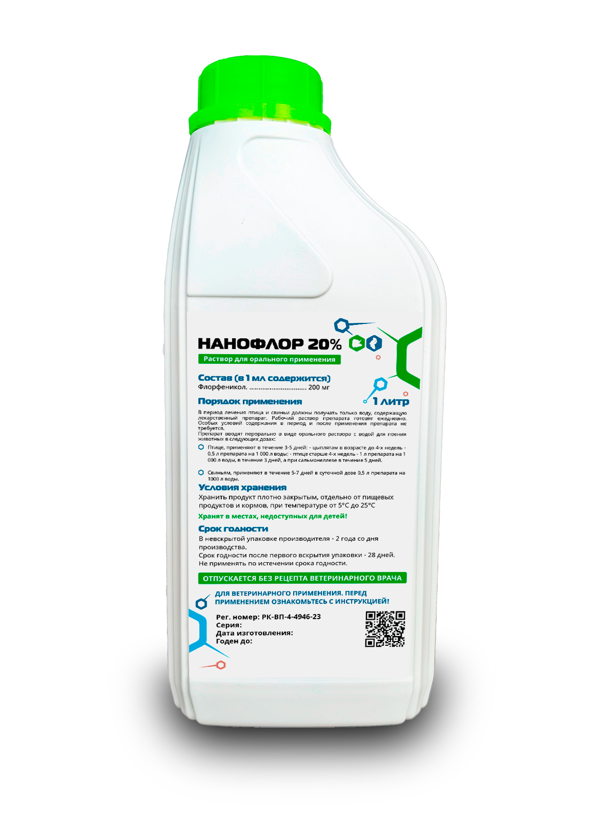 Птице, применяют в течение 3-5 дней: - цыплятам в возрасте до 4-х недель - 0,5 л препарата на 1 000 л воды; - птице старше 4-х недель - 1 л препарата на 1 000 л воды, в течение 3 дней, а при сальмонеллезе в течение 5 дней.
