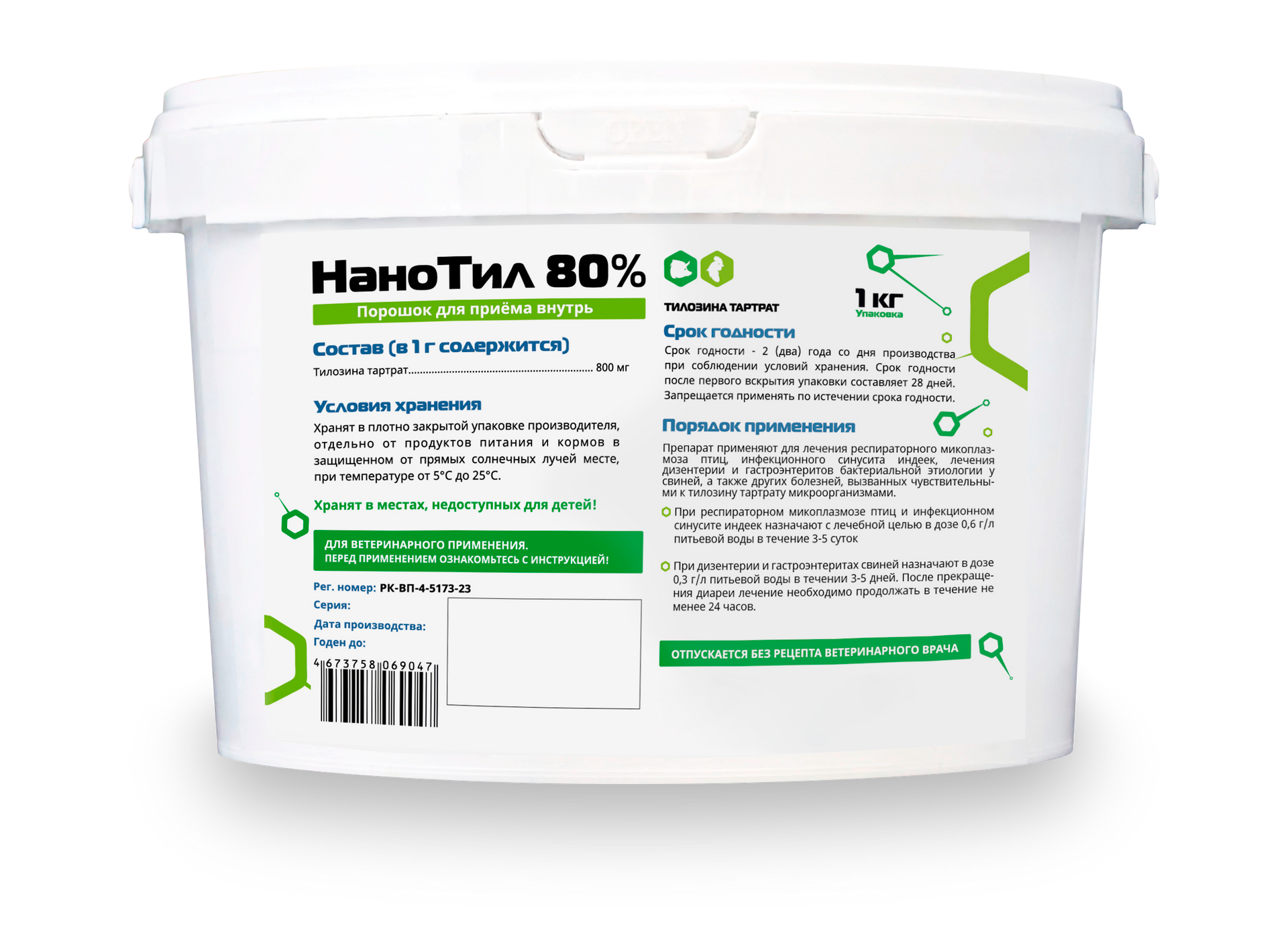 Препарат назначают животным и птице с питьевой водой. В период лечения единственным источником питьевой воды для свиней и птицы должна быть вода с антибиотиком. Перед применением рекомендуемую дозу препарата растворяют в небольшом количестве воды, добавляя воду к препарату, а затем разводят до необходимой концентрации. Допускается применять НаноТил 80 % в смеси с кормом.
